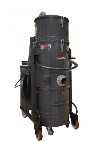Der DG 75 AF PN ist ein Industriesauger für Staub und Feststoffe in Umgebungen mit brennbarem Staub. Er ist aus lackiertem Stahl gefertigt und zeichnet sich durch hohe Haltbarkeit und einfache Wartung aus. Die antistatischen Polyesterpatronen der Klasse M sind leicht zu reinigen und eignen sich für eine Vielzahl industrieller Anwendungen, wodurch das Risiko elektrischer Entladungen und Brände vermieden wird, insbesondere bei Vorhandensein von brennbarem oder explosivem Staub. Die integrierte automatische pneumatische Pendelabreinigung sorgt für eine gleichbleibende Filtrationsleistung. Das Ex-zertifizierte, staubdichte Seitenkanalgebläse bietet eine hohe Leistung in Bezug auf Luftstrom und Druck und gewährleistet eine effiziente Absaugung auch von schweren oder sperrigen Materialien. Die Maschine entspricht der Norm EN 17348 DT.