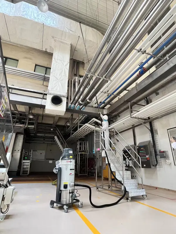Industrial vacuum cleaning systems for factory maintenance and facility management