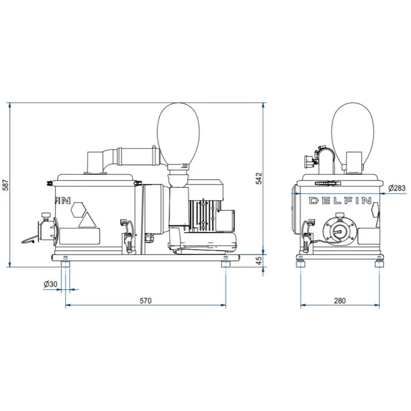 machines and production lines. Side channel blower and electrical panel