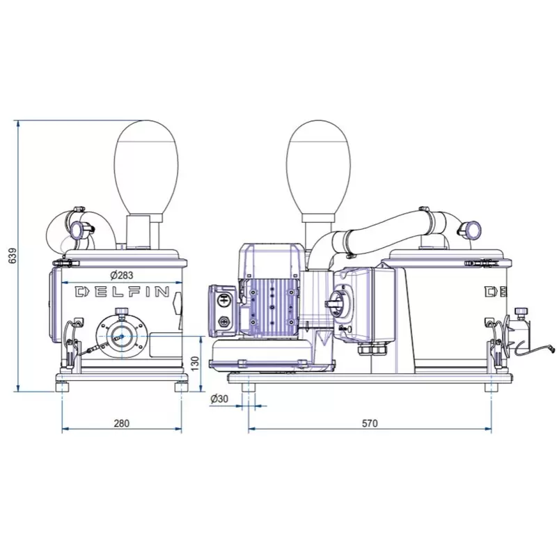 machines and production lines. Side channel blower and electrical panel