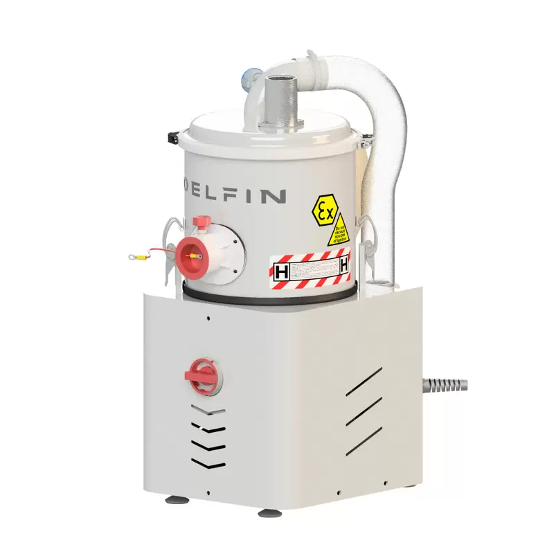 Industrial Vacuum Cleaner on board the machine: the perfect solution for continuous extraction of dust and fumes in production processes. Made of stainless steel, it guarantees resistance and long-lasting durability. The powerful Motor, combined with the M H14 filter and manual cleaning system, ensures efficient air Filtration. Designed to operate 24/7 in ATEX 22 zone, it is ideal for integration into existing production lines. The side channel blower and Ex certified control panel make it safe for use in explosion risk zones. This range joins the on-board machine suction solutions in the packaging sector