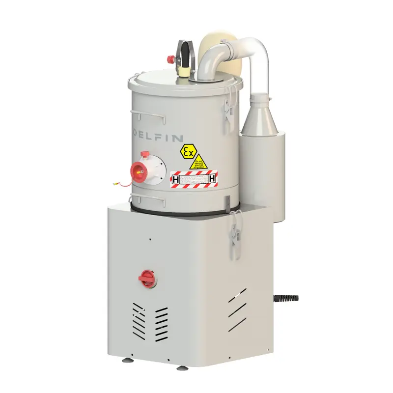 Industrial Vacuum Cleaner on board the machine: the perfect solution for continuous extraction of dust and fumes in production processes. Made of stainless steel, it guarantees resistance and long-lasting durability. The powerful Motor, combined with the M H14 filter and manual cleaning system, ensures efficient air Filtration. Designed to operate 24/7 in ATEX 22 zone, it is ideal for integration into existing production lines. The side channel blower and Ex certified control panel make it safe for use in explosion risk zones. This range joins the on-board machine suction solutions in the packaging sector