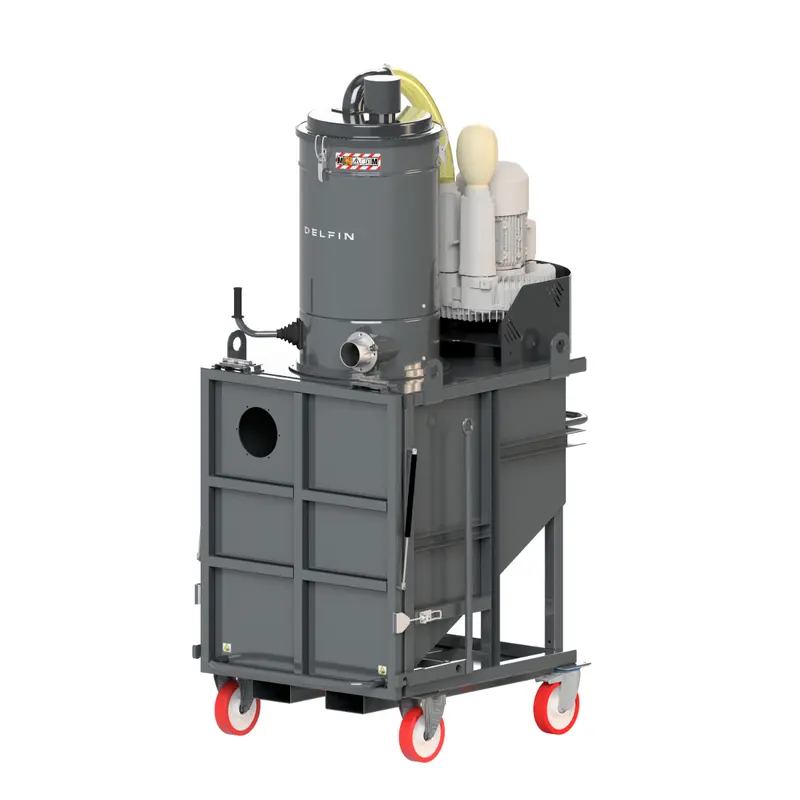 Delfin systems are designed to handle large volumes of dust and residues without interruption, reducing or automating the frequency of emptying and ensuring operational continuity. Large tanks, integrated rotary valve discharges, and interoperable modular solutions make it possible to handle even the most demanding conditions without compromising process efficiency, while ensuring continuous monitoring. Thanks to their large collection capacity and easy transport, combined with hydraulic or pneumatic mechanisms, the containers can be quickly removed and repositioned under the machine even in confined spaces, reducing downtime and increasing productivity.