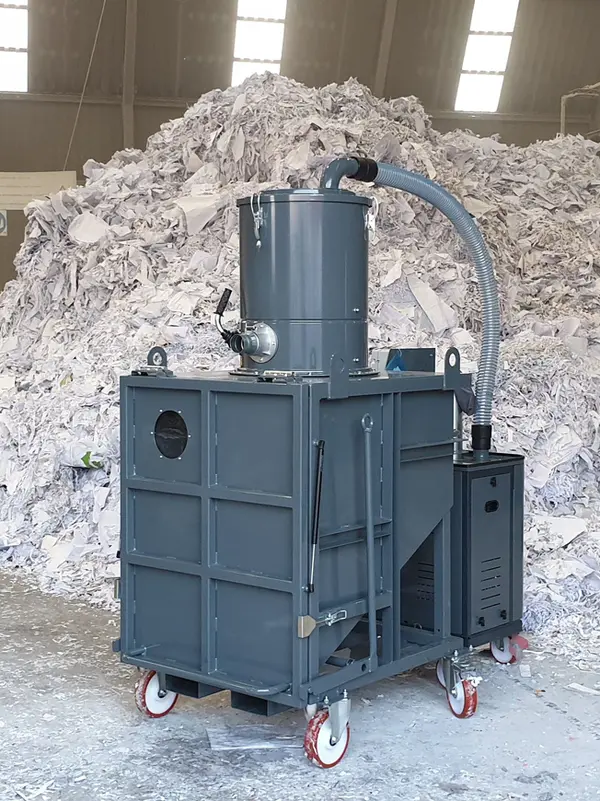 Utilizziamo aspiratori ad alta portata con sistemi di pulizia automatica dei filtri, che permettono di captare costantemente le polveri generate dai trituratori senza interruzioni per la manutenzione manuale dei filtri.